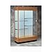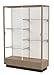 - Wooden display cases on a 10" high base include sliding tempered glass doors, built-in locks, steel shelving hardware, and levelers.