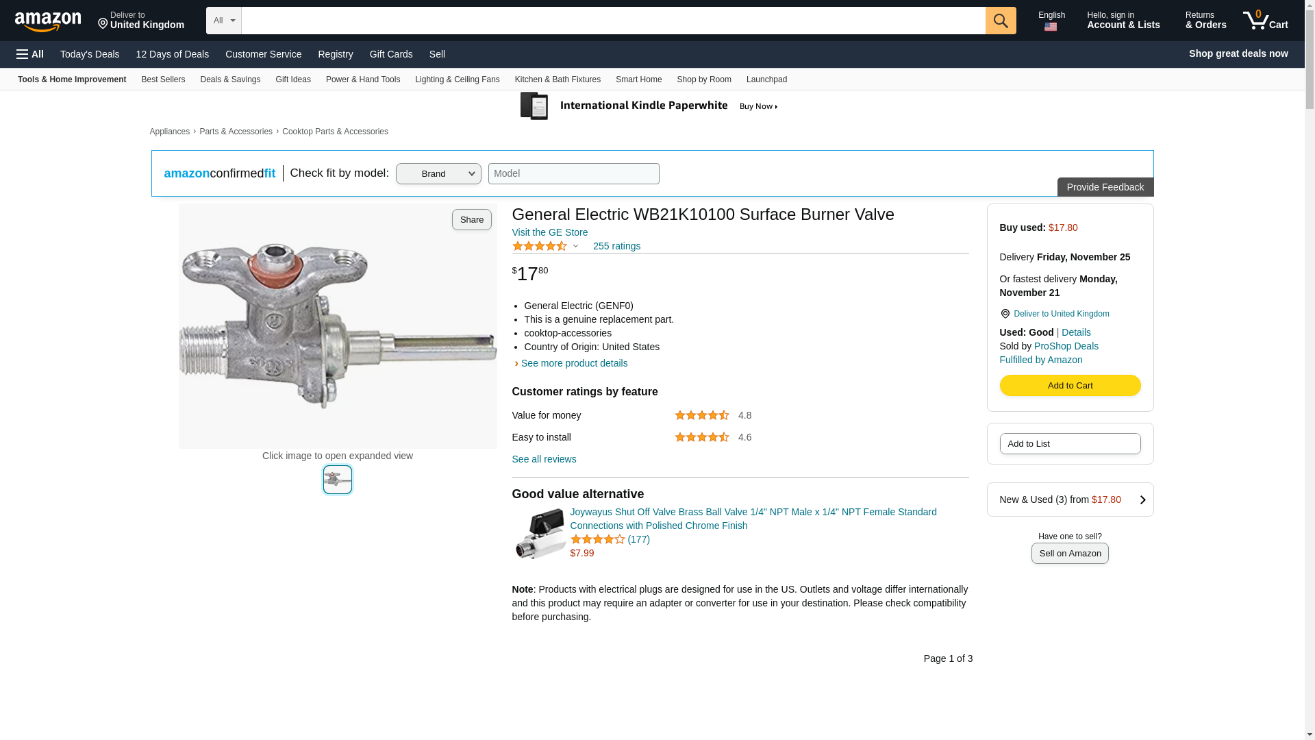 ![]() midwestapplianceparts.com | WB21K10100-GEH-P | 1 | -2 | 1 | 1 @ $30.35 |