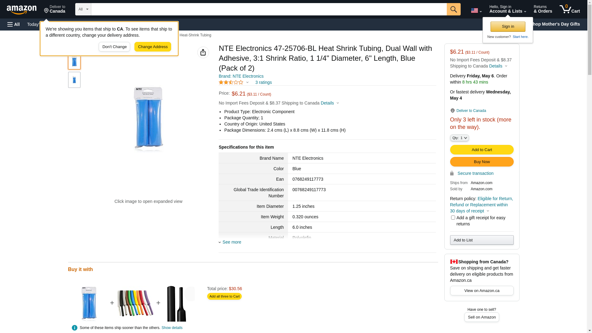NTE Electronics 47-25706-BL Heat Shrink Tubing, Dual Wall with Adhesive, 3:1 Shrink Ratio, 1 1/4" Diameter, 6" Length, Blue (Pack of 2)