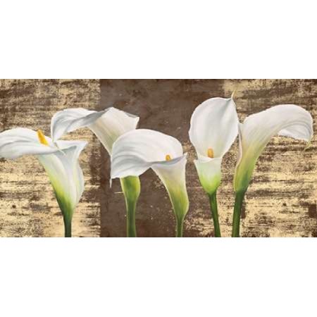 Callas on Gold (mocca variation) was reproduced on the finest Canvas which captures all of the vivid colors and details of the original art. This museum quality Canvas Art was faithfully reproduced using ultra-precision print technology and fade-resistant archival inks on artist premium acid-free grade canvas. The overall size is 24 x 48 inches plus an additonal 1.5 inches of extra canvas on all 4 sides to allow for easy stretching and/or framing. This premium rolled Canvas Art is ready for stretcher bars or custom framing. <br /> <br /> <ul> <li>Brand New and Rolled and ready to stretch or frame</li> <li>Canvas Art Title: Callas on Gold (mocca variation)</li> <li>Canvas Size: 24.00 x 48.00 inches plus an additional 1.5 inches of extra canvas on all 4 sides to allow for easy stretching and/or framing</li> <li>Licensor: Selected Artworks</li> <li>Artist: Jenny Thomlinson</li> </ul>