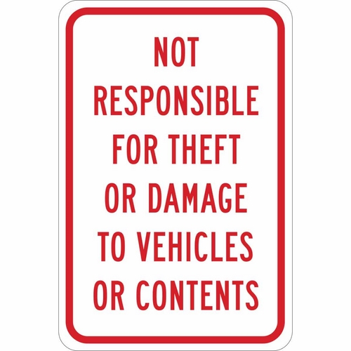 Brady B401 18X12 Red/wht Not Responsible For / Sign - 124504