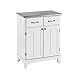 Home Styles Buffet of Buffets White with 18-gauge Stainless Steel Top, Two Drawers, Two Wood Panel Doors, Brushed Steel Hardware, and Adjustable Shelf