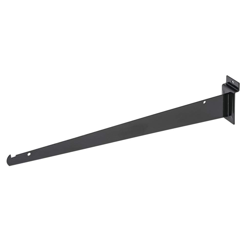 The shelf bracket for slatwall has a black coating. Each fixture provides the right amount of space to display products. The shelf bracket for slatwall attaches to gridwall. Each fixture adds a unique look to any exhibit. The shelf bracket for slatwall is the perfect accessory for creating a one of a kind look.