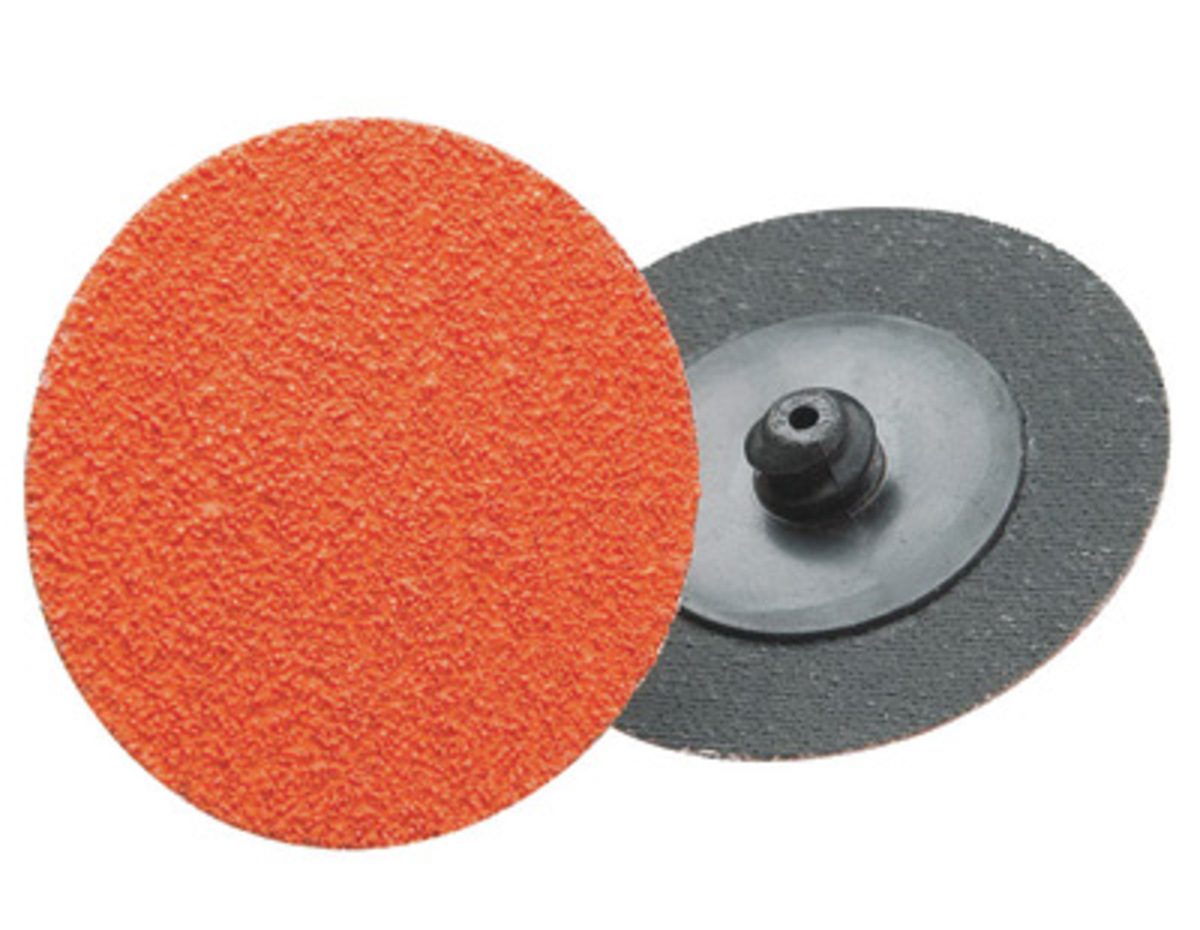 ' Quick Change Disc, Disc Dia. 3 In., Attaching System TR, Attachment Type Roll-On/Off, Abrasive Type Coated, Abrasive Material Ceramic, Grit 50, Grade Coarse, Max. RPM 20, 000, Series R980, Backing Material Cloth, Backing Weight Y, Color Orange, Package Quantity 25 '