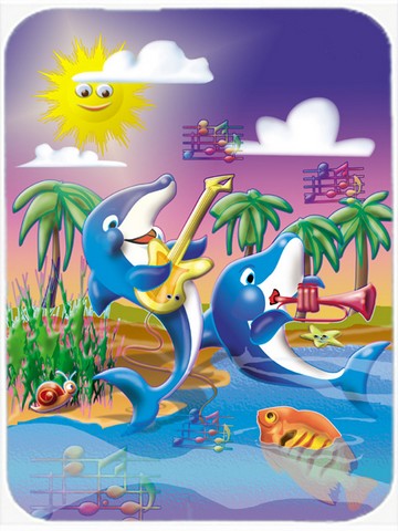 Caroline's Treasures APH2485LCB Dolphin's Playing Music Glass Cutting Board Large Decorative Tempered Glass Kitchen Cutting and Serving Board Large Size Chopping Board
