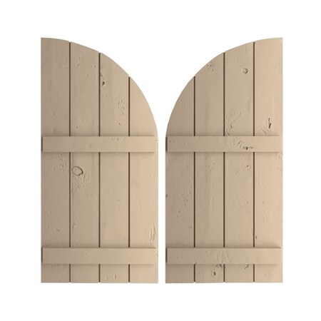 Ekena Millwork SHUBJQ22X88KPPR (66" Low Side) Timberthane Four Joined Board-n-Batten w/Quarter Round Arch Top Faux Wood Shutters (Per Pair), Primed Tan, 22" W x 88" H