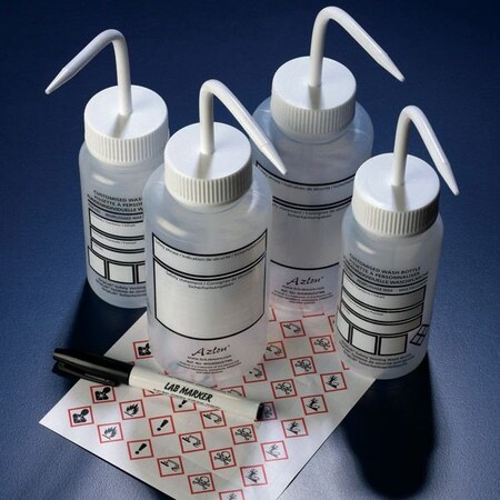 Globe Scientific Wash Bottle, Wide Mouth, 1000mL, LDPE, Do-It-Yourself, Write-On-Panel, Safety Vented, White Screwcap