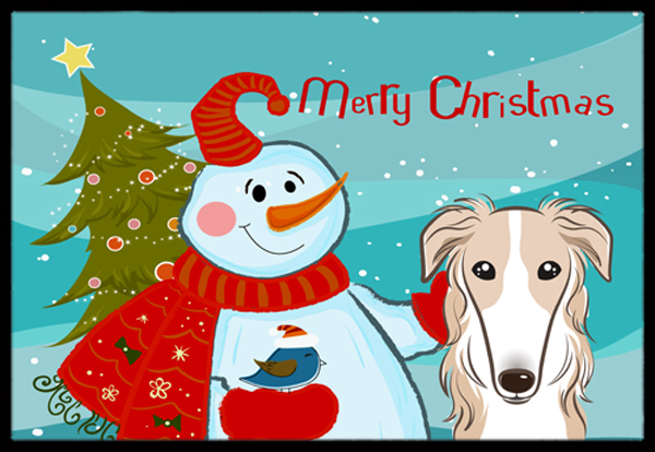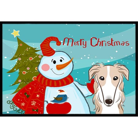Caroline's Treasures BB1848JMAT Snowman with Borzoi Doormat 24x36 Front Door Mat Indoor Outdoor Rugs for Entryway, Non Slip Washable Low Pile, 24H X 36W