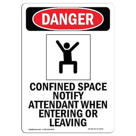 OSHA Danger Sign, Confined Space Notify, 14in X 10in Aluminum