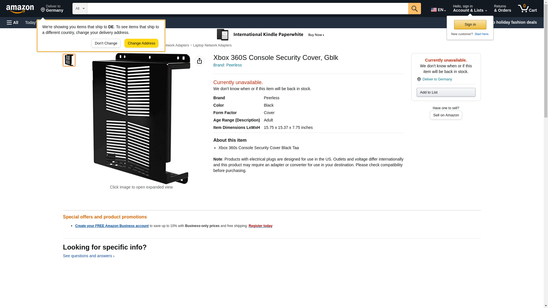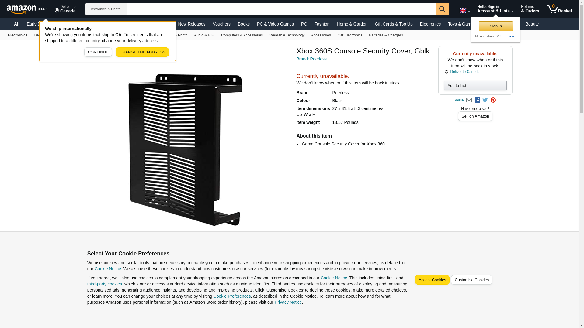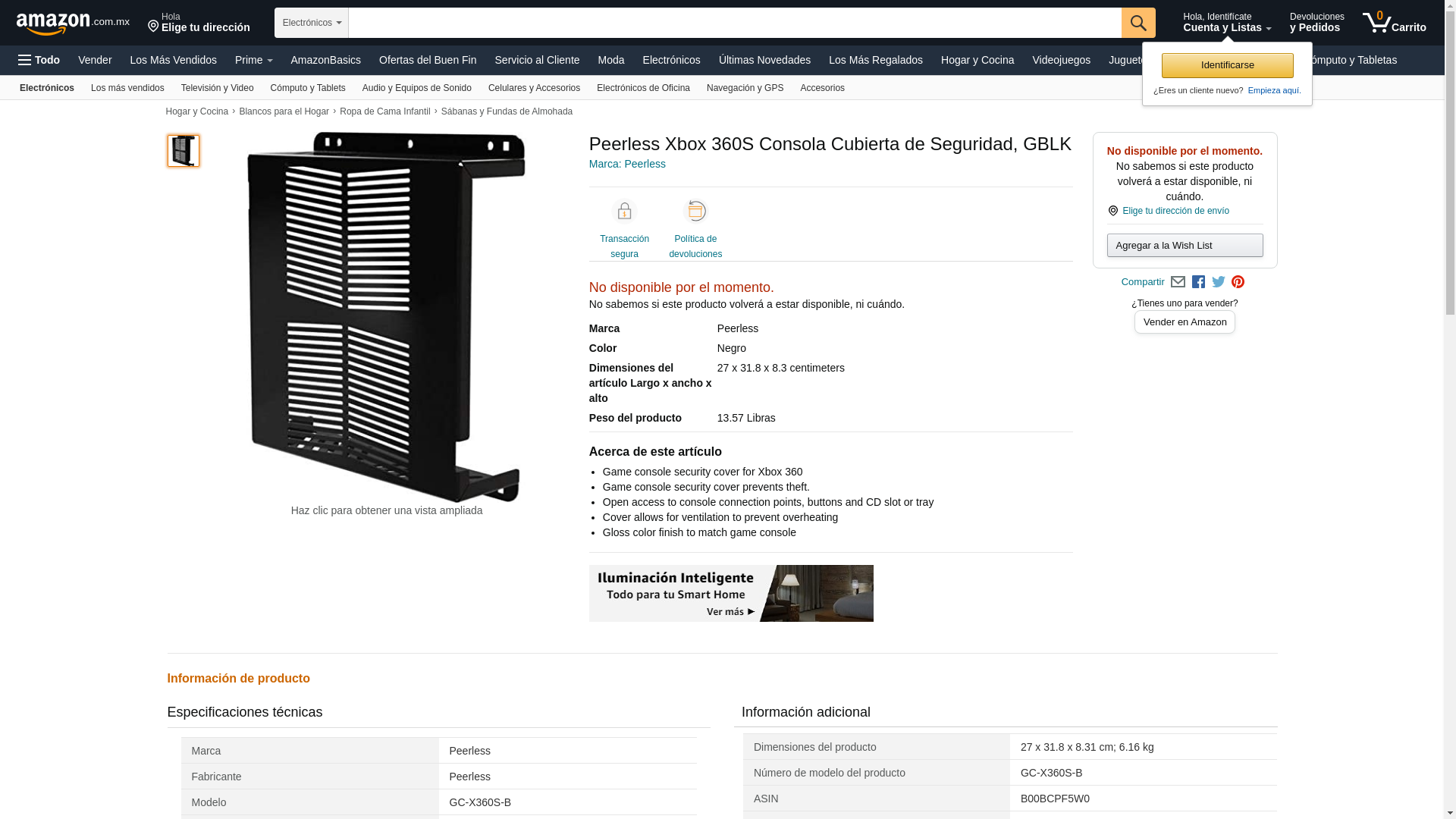 PEERLESS INDUSTRIES Xbox 360S Console Security Cover GBLK