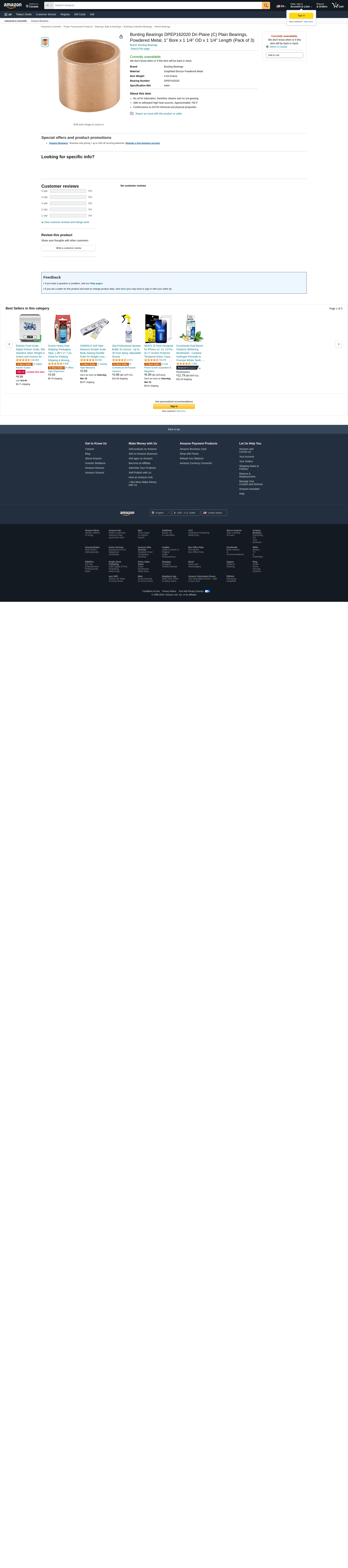 Bunting Bearings DPEP162020 Dri Plane (C) Plain Bearings, Powdered Metal, 1" Bore x 1 1/4" OD x 1 1/4" Length (Pack of 3)