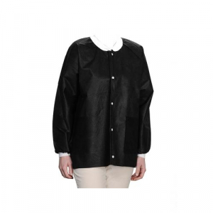 | Feature | Extra-Safe, Wrinkle-Free, No-See-Through, Noble Looking Disposable SMS Jacket, Black, 4X-Large, 10/pk, Snap Front, 3 Pockets, Knit Cuffs & Collar, Latex Free. |