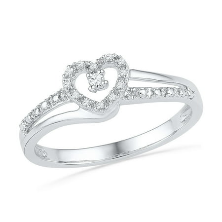 <p><span style="font-size:16px;"><b><u>Description</u></b><br /></span></p> <p><span style="font-size: 14px;">10kt White Gold Womens Round Diamond Heart Love Promise Bridal Ring 1/20 Cttw</span></p> <br /> <p><span style="font-size:16px"><u><b>Gemstone Details</b></u></span></p> <p><span style="font-size:14px">1/20 Carats total weight<br /><br />All diamonds are natural and conflict-free in origin<br /><br /><b>Round Diamond</b><br /></span></p> <li>1/20 ct.t.w.</li> <li>I2-I3 clarity</li> <li>J-K color</li> <li>Pave setting<br /><p><span style="font-size:16px"><u><b>Specifications</b></u><br /></span></p><p><span style="font-size:14px">10kt White Gold<br />2.03 grams (approximately)<br />Ring size selectable</span></p><p><span style="font-size:11px">Combined diamond weight of 1/20 carats total weight represents a range of 0.04 - 0.06 cts. t.w.</span></p></li>