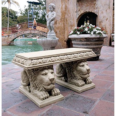 Patterned after an ancient bench we saw near St. Johns Square this 47 lb. European-style Toscano exclusive showcases a pair of regal lions. Positioned crouching face-forward these timeless symbols of strength support a yard-long sturdily reinforced cast resin bench as either garden seating a table or a unique media stand indoors. Ships in 3 pieces. 29";"Wx17"Dx15"H. 47 lbs. <p></p> <ul> <li>John's Square, this 47 lb</li> <li>European-style Toscano exclusive showcases a pair of regal lions</li> <li>Positioned crouching face-forward, these timeless symbols of strength support a yard-long, sturdily reinforced cast resin bench as either garden seating, a table or a unique media stand indoors Ships </li> <li>Vista su casa con buen gusto y clase con este mueble unico!</li> </ul> <p></p>