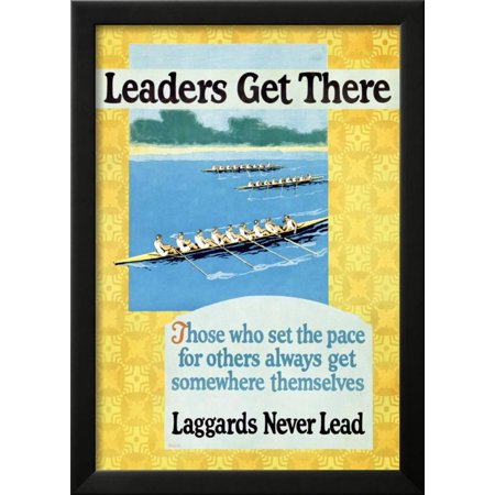 <ul> <li>Title: Leaders Get There, Rowing Poster</li> <li>Product Type: Framed Art Print</li> <li>Framed in SOHO Black</li> <li>Arrives ready-to-hang for fast, simple installation</li> <li>Framed Size: 17.5x24 in.</li> <li>Handcrafted in the USA</li> </ul>