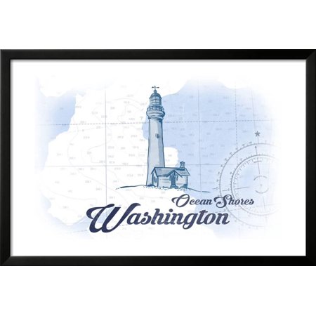 <ul> <li>Title: Ocean Shores, Washington - Lighthouse - Blue - Coastal Icon</li> <li>Artist: Lantern Press</li> <li>Product Type: Framed Art Print</li> <li>Framed in SOHO Black</li> <li>Arrives ready-to-hang for fast, simple installation</li> <li>Framed Size: 38x26 in.</li> <li>Handcrafted in the USA</li> </ul>