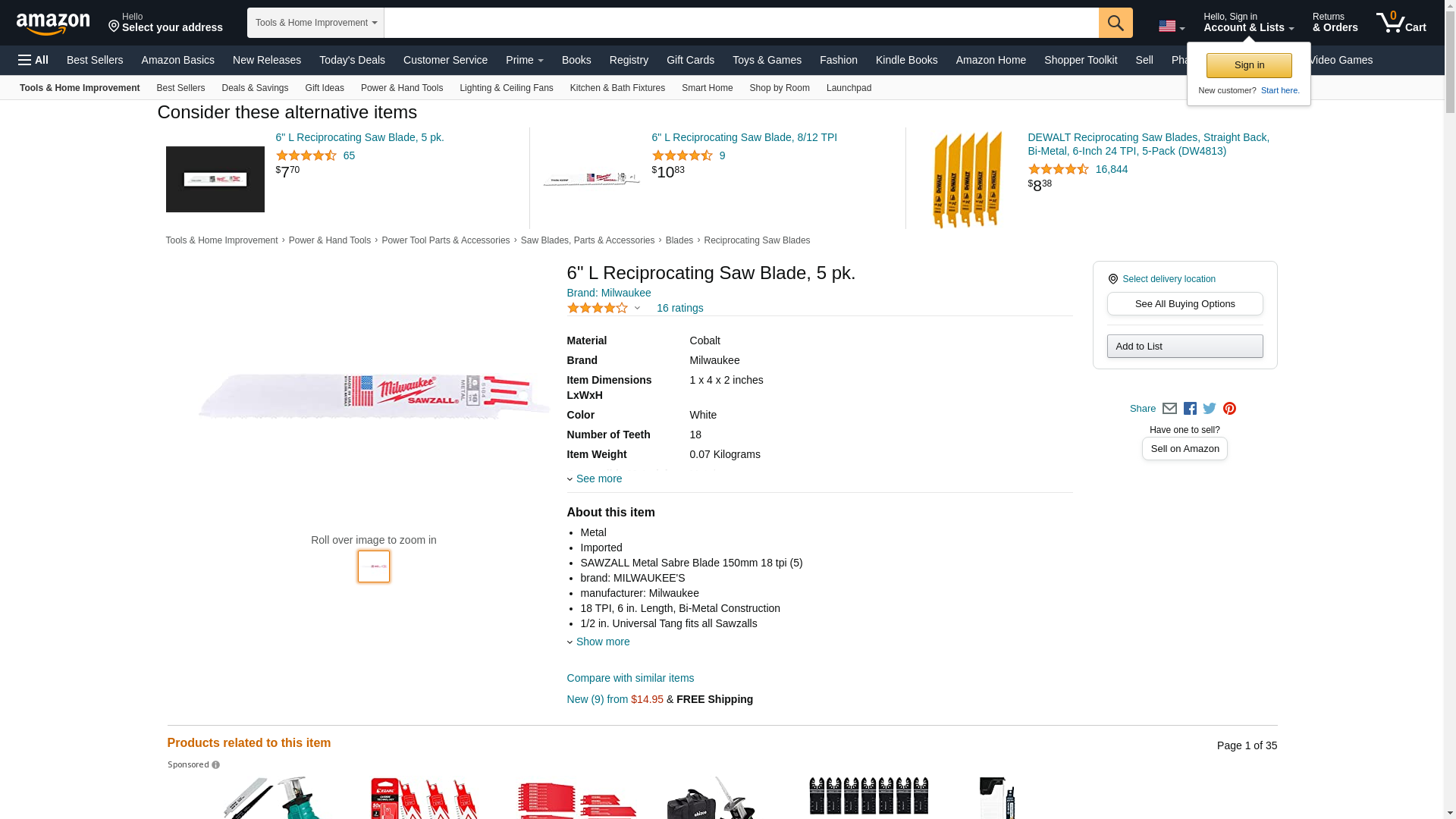6" 18 Teeth/Inch Super Sawzall Blade (Package of 5) Milwaukee designs and manufactures Sawzall blades for the toughest professional applications. Material, blade geometry and heat treating are designed to maximize metal cutting performance. Features: 6" Long x 3/4" Wide x .035" Thick 18 Teeth per Inch 1/2" Shank Pack of 5 Bi-Metal Construction Since its founding in 1924, Milwaukee has focused on a single vision: To produce the best heavy-duty electric power tools and accessories available to the professional user. Today, the Milwaukee name stands for the highest quality, durable and reliable professional tools money can buy.