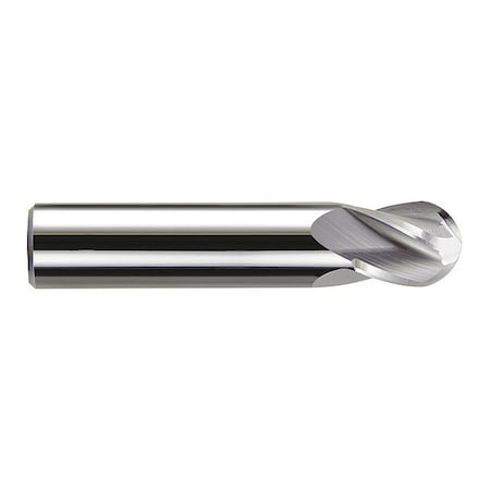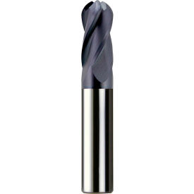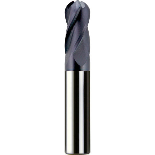 3/8" Dia., 3/8" Shank, 5/8" LOC, 2" OAL, 4 Flute Solid Carbide Ball Single End Mill, AlTiN