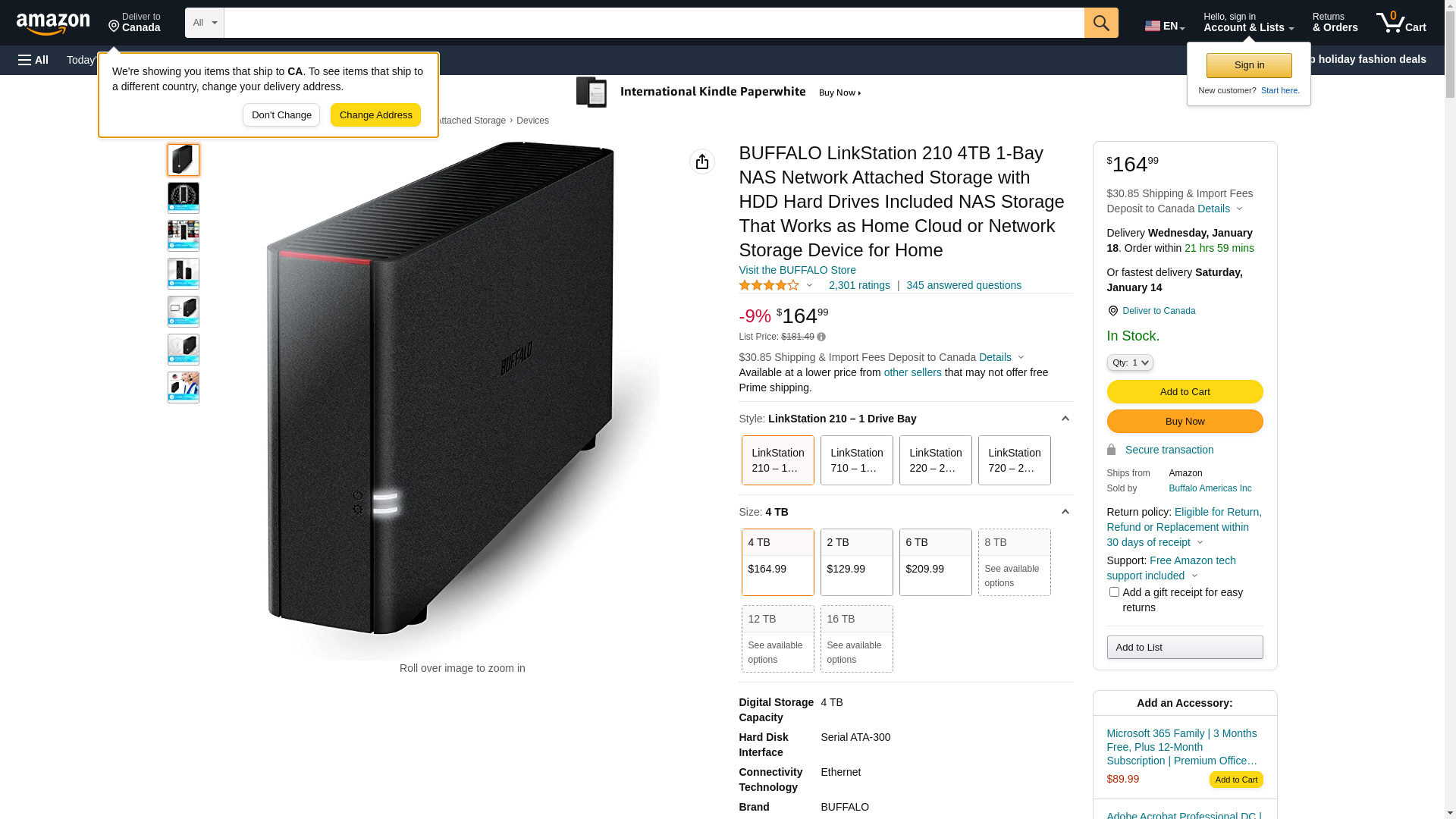 Buffalo Technology (Usa), Inc - Buffalo Linkstation 210 Network Attached Storage - Marvell Armada 300 370 800 Mhz - 1 X Total Bays - 4 Tb Hdd (1 X 4 Tb) - 256 Mb Ram - Serial Ata/300 - 1 X Usb Ports "Product Category: Storage Arrays & Servers/Storage Servers"