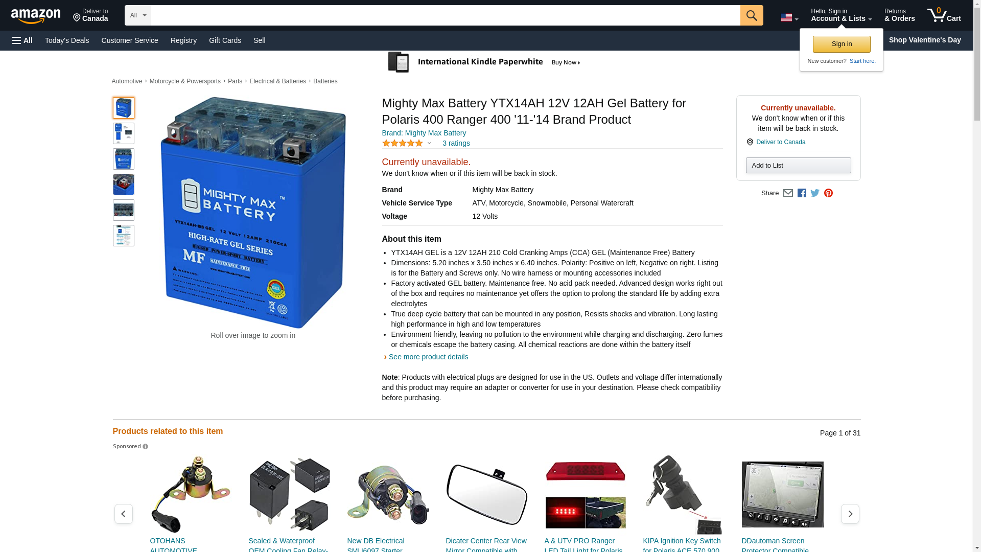 YTX14AH 12V 12AH GEL Battery for Polaris 400 Ranger 400 '11-'14