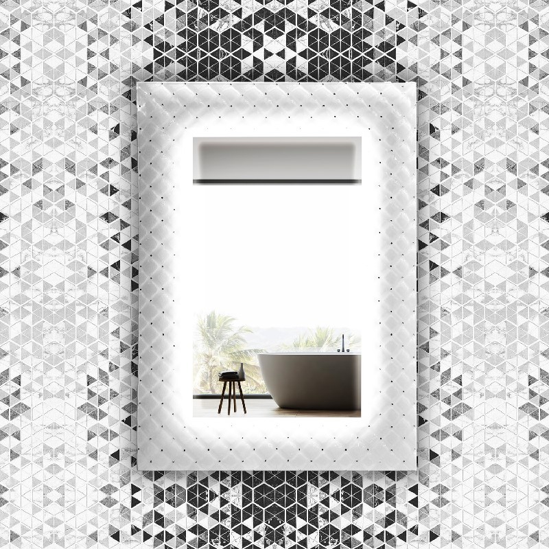 PiacereBath MIR-TIL-WHT Tilly 27 5/8 Inch Luxury Murano Glass Single Vanity LED Mirror - Silver MIR-TIL-WHT MIRTILWHT