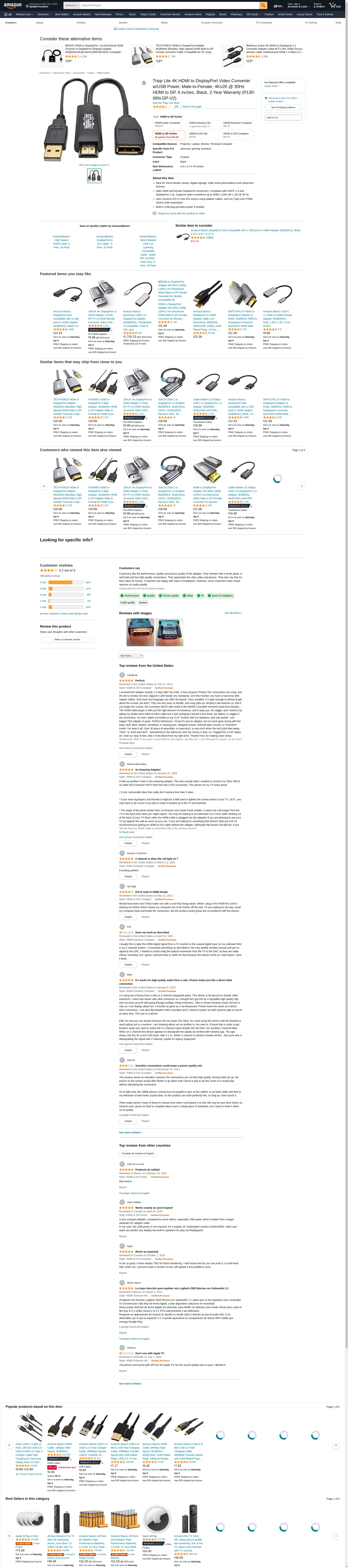 Tripp Lite 4K HDMI to DisplayPort Video Converter w/USB Power, Male-to-Female, 4Kx2K @ 30Hz HDMI to DP, 6 inches, Black, 2-Year Warranty (P130-06N-DP-V2)