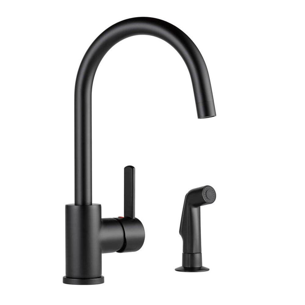 - Matte Black finish kitchen faucet from the Apex collection by Peerless is sleek and modern
