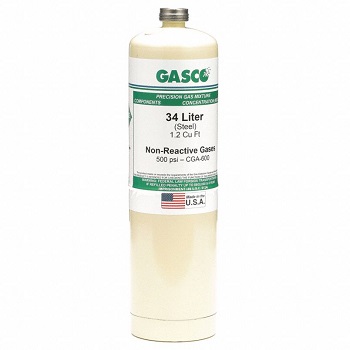 0, 34LS-92-500 Hydrogen, 500 PPM, 34 Liter Cylinder, Balanced Air.