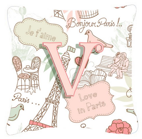 Carolines Treasures CJ2002-VPW1818 Letter V Love In Paris Pink Canvas Fabric Decorative Pillow