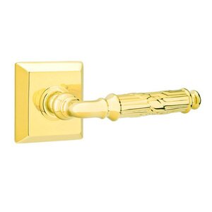 Brass Designer Levers Collection - Passage Right Handed Ribbon & Reed Lever With Quincy Rose in Polished Brass by Emtek Hardware - 8131234RBLRHUS3 | MyKnobs