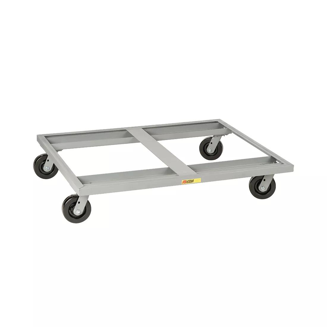 Oversized dolly provides convenient maneuverability for any bulk container or pallet. LITTLE GIANT Bulk Container Dolly moves bulk containers or pallets around your shop or warehouse. All-welded steel frame features a 9" deck height. Four 6" non-marking phenolic swivel casters.