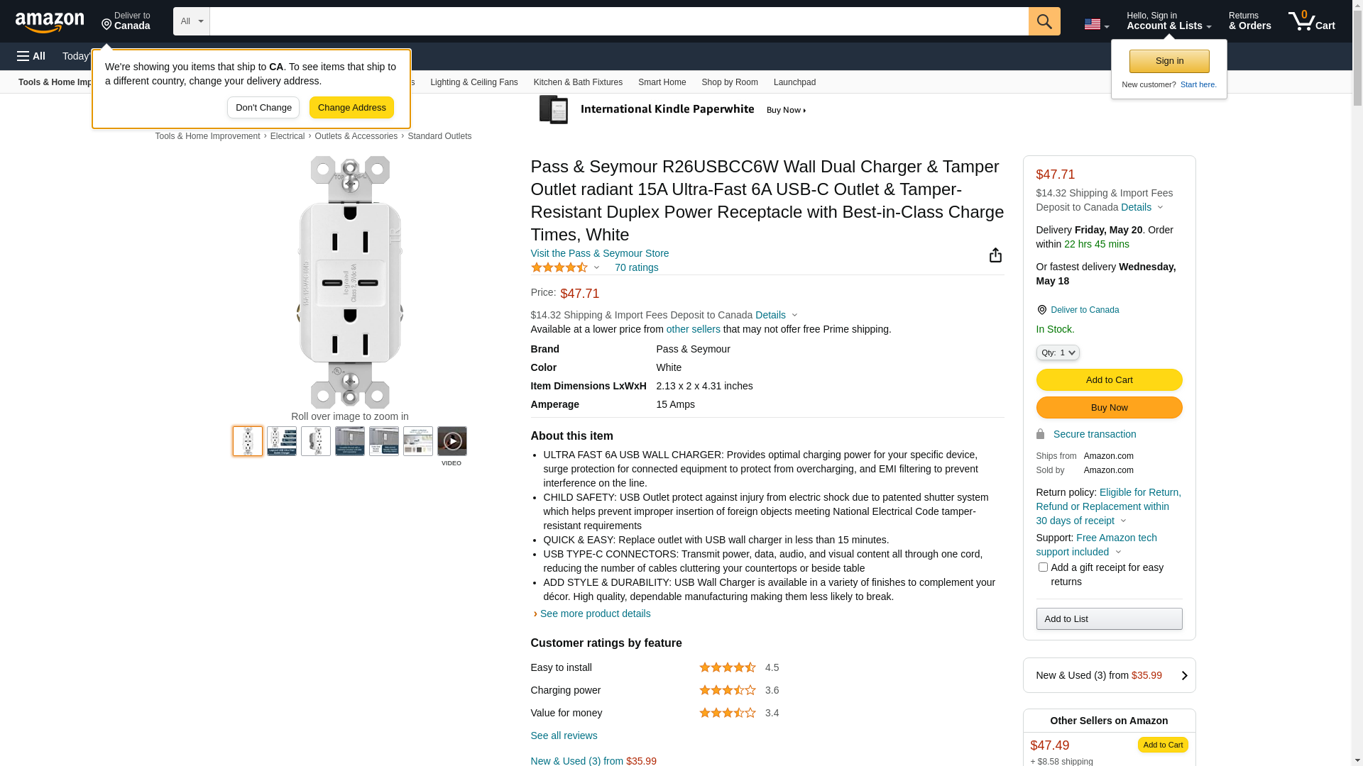 - Included - 1 Legrand - Pass & Seymour Radiant wall outlet with USB ports white, 15 amps, 125 volts, tamper-resistant wall outlet with USB C