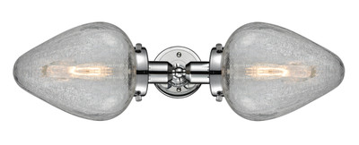 INNOVATIONS 900H-2W-PC-G165 Acorn 2 Light Bath Vanity Light part of the Austere Collection Polished Chrome. Style: Industrial, Restoration-Vintage. Collection Name: Austere. Metal Finish(Body): Polished Chrome. Metal Finish(Canopy/Backplate): Polished Chrome. Material: Steel, Cast Brass, Glass. Dimension(in): 7(H) x 25.5(W) x 8.875(Ext). Bulb: (2)60W Medium Base Incandescent(Not Included). Voltage: 120. Dimmable: Yes. Color Temperature (Kelvin): 2200. Color Rendering Index (CRI): 99.9. Lumens: 220. Life Expectancy (Hours): 2000. Glass Shade Description: Clear Crackle Geneseo. Glass Type: Crackled. Shade Shape: Teardrop. Glass or Metal Shade Color: Clear Crackled. Shade Material: Glass. Shade Dimension(in): 6.5(W) x 8.75(H). Fitter Measurement (Glass Or Metal Shade Fitter Size): 3.25 inch Fitter. Backplate Dimension(in): 4.5(Dia) x 0.75(Depth). California Proposition 65 Warning Required: Yes. UL/ETL Certification Type: Damp Location.