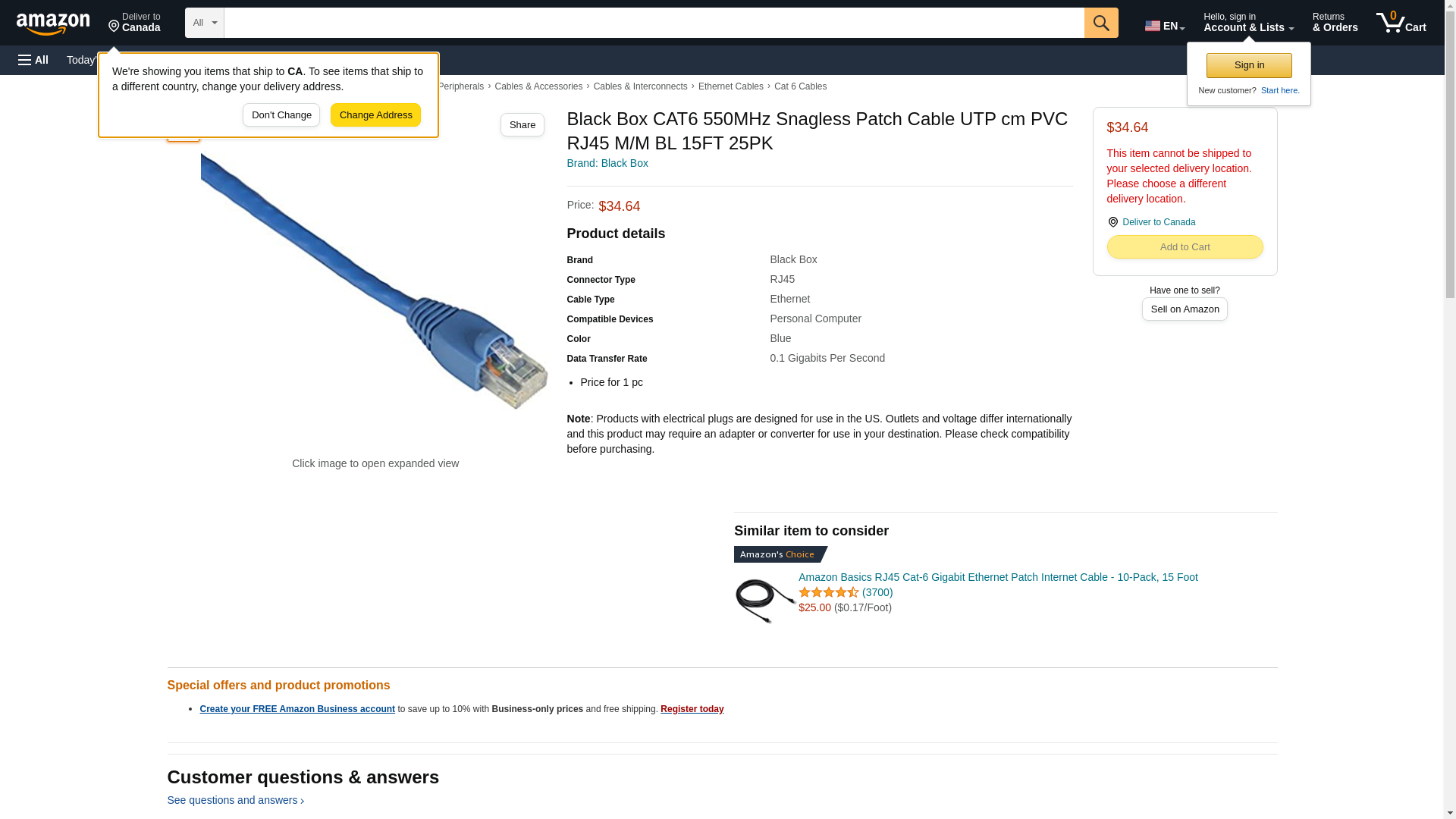 GigaTrue CAT6 Channel 550-MHz Patch Cable (UTP), Snagless Boots, Blue, 15-ft. (4.5-m), 25-Pack Quick Facts This CAT6 cable features snagless boots for easier installation. Meets or exceeds CAT6 specifications. Tested to 550 MHz. Guaranteed for life! Further Details Get high-level CAT6 performance in an end-to-end Black Box GigaTrue channel. Cable construction: stranded, 24 AWG copper wire, RJ-45 connectors, 4-pair, T568B, PVC jacket, straight-pinned. Improved attenuation provides cleaner data and video transmissions. For 1000BASE-T, 100BASE-TX, 100BASE-VG, 155-Mbps ATM, 100-Mbps FDDI/CDDI, and other high-speed applications. Perfect for full broadband and baseband video. Stranded cable delivers full Power Sum performance. Provides full-duplex operation for next-generation applications. Meets balance requirements (LCL/LCTL), resulting in better transmission.