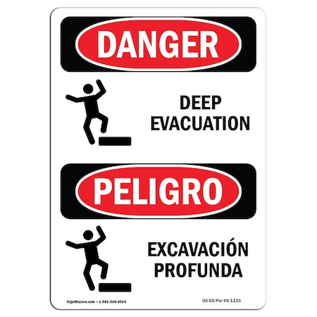 OSHA Danger Sign, Deep Evacuation Bilingual, 10in X 7in Decal