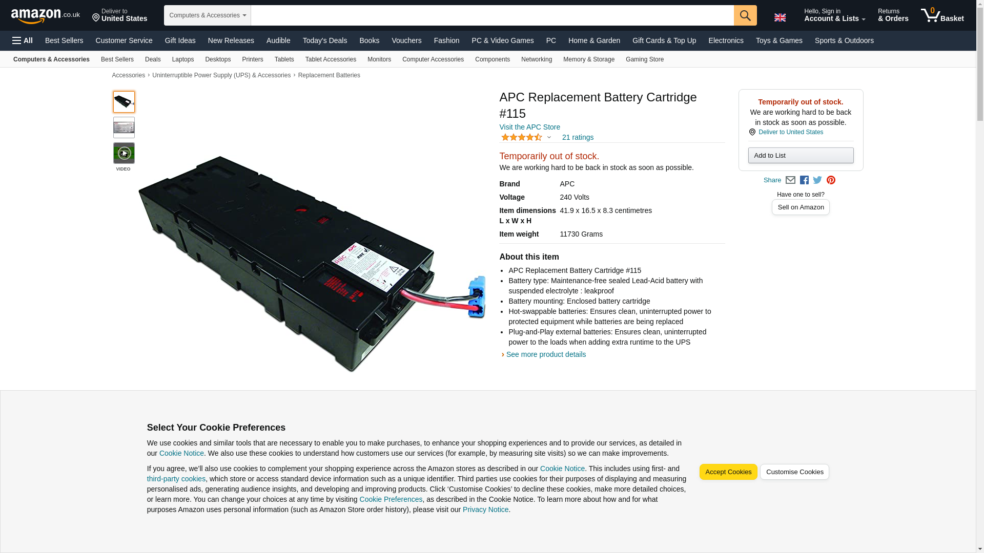 | Feature | APC APCRBC115 UPS Replacement Battery Cartridge (Black) |