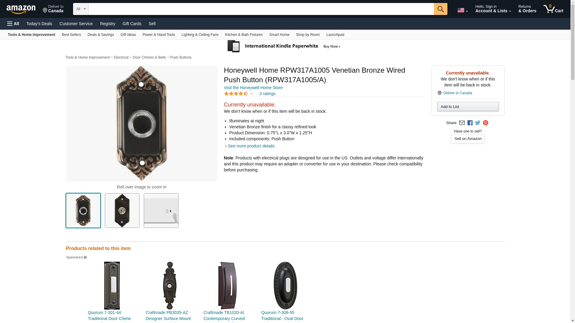 Honeywell Home RPW317A1005 Venetian Bronze Wired Push Button (RPW317A1005/A)