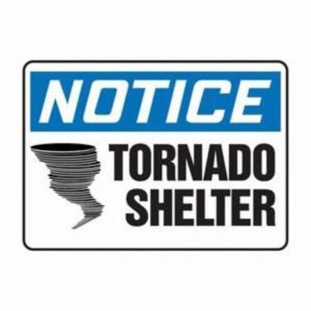 Accuform MADM823XV Adhesive Dura-Vinyl Sign, Legend "Notice Tornado SHELTER", 10" Length x 14" Width x 0.006" Thickness, Blue/Black on White