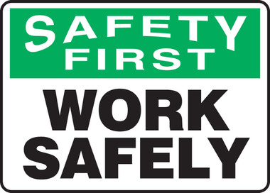 Order MGNF915XV by Accuform Dura-Vinyl Sign "Safety First Work Safely" - US Mega Store