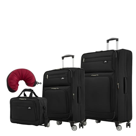 <ul> <li>This Skyway Sigma 5.0 set includes a 16" shoulder tote, 21" 4-wheel expandable carry-on, 29" 4-wheel expandable upright, and a travel pillow.</li> <li>The Shoulder Tote has durable fabric exterior resists abrasion and tearing while providing superior protection against the elements. Reinforced carry straps with a Velcro grip promote easy lifting and optimal handling. A removable, adjustable padded shoulder strap is also included. A piggy-back strap allows the tote to fit comfortably and securely on your upright luggage during travel. Stud feet on the bottom of the bag provide additional protection.</li> <li>The 21-inch has durable fabric exterior resists abrasion and tearing while providing superior protection against the elements. Two exterior zippered pockets allow for easy access to travel essentials. A multi-stage retractable handle with ergonomic grip fits comfortably in hand for optimal comfort and easy movement. Padded side and top carry grips promote easy lifting and optimal handling. Custom 360 double wheel system smoothly glides in any direction.</li> <li>The 29-inch has durable fabric exterior resists abrasion and tearing while providing superior protection against the elements. Two exterior zippered pockets allow for easy access to travel essentials. A multi-stage retractable handle with ergonomic grip fits comfortably in hand for optimal comfort and easy movement. Padded side and top carry grips promote easy lifting and optimal handling. Custom 360 double wheel system smoothly glides in any direction.</li> <li>All spinners cases expand with the pull of a zipper for 2 inches of added packing capacity. The fully lined, large capacity interior features a zippered mesh pocket and a large plastic lid pocket for separating items. A removable organizer keeps smaller items and toiletries separate from other packed items. Adjustable tie-down straps keep personal belongings in place. 5-YEAR LIMITED WARRANTY.</li> </ul>