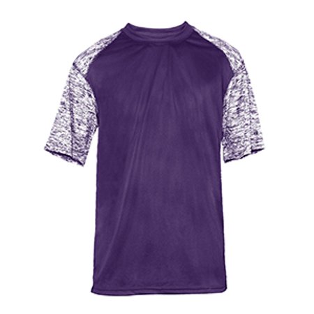 3.5 oz., 100% polyester moisture management, antimicrobial performance fabric; Sublimated shoulder panels and sleeves with coverstitch. ; Self-fabric collar. Double-needle hem.; Badger heat seal logo on left sleeve.;