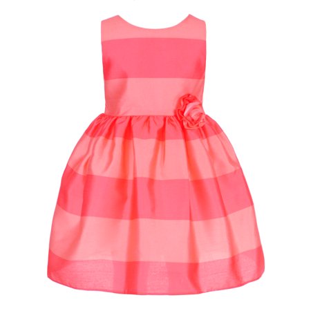 <ul> <li>Pretty as a Picture dress</li> <li>Poly shantung construction</li> <li>Striping</li> <li>Zipper and tie at back</li> <li>Rosette</li> </ul>