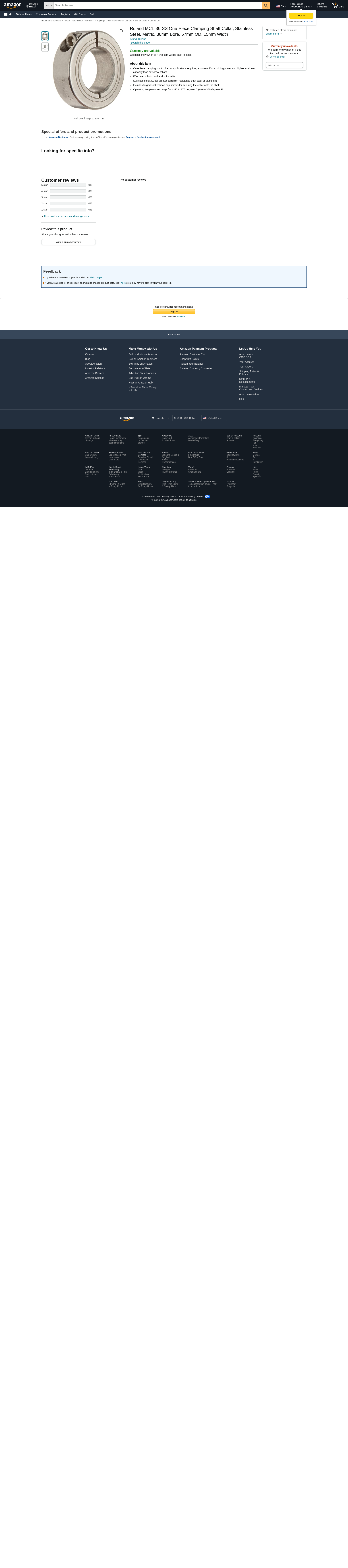 Ruland Mfg MCL-36-SS | Shaft Collar Clamp 1pc 36mm 303 Stainless Steel | 30VL03 | Raptor Supplies Worldwide
