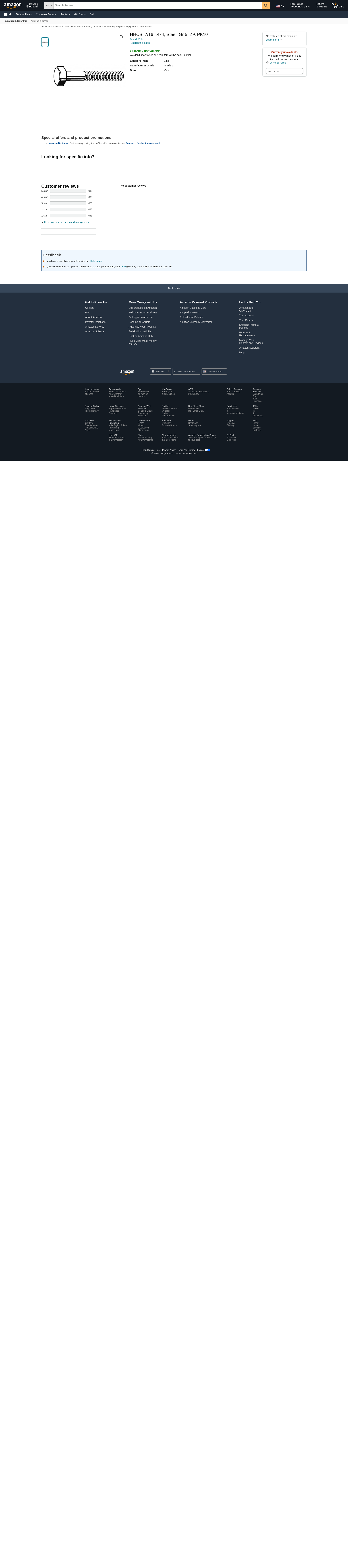 Value Brand, N01200.043.0400, HHCS, 7/16-14x4, Steel, Gr 5, ZP, PK10