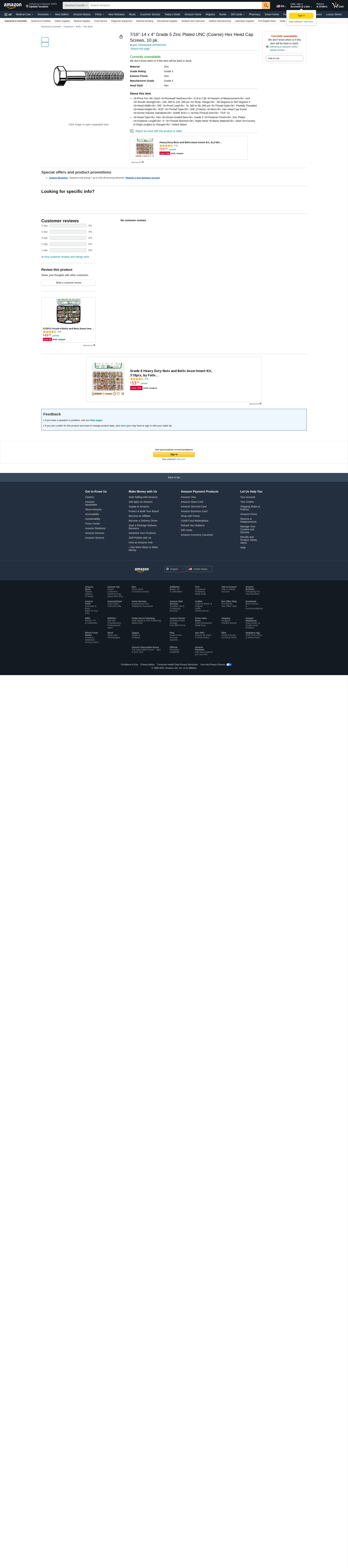 N01200.043.0400 | Hex Head Cap Screw 7/16-14X4 Steel Grade 5 Zinc Plated, 10PK | 38TM68 | Raptor Supplies Worldwide