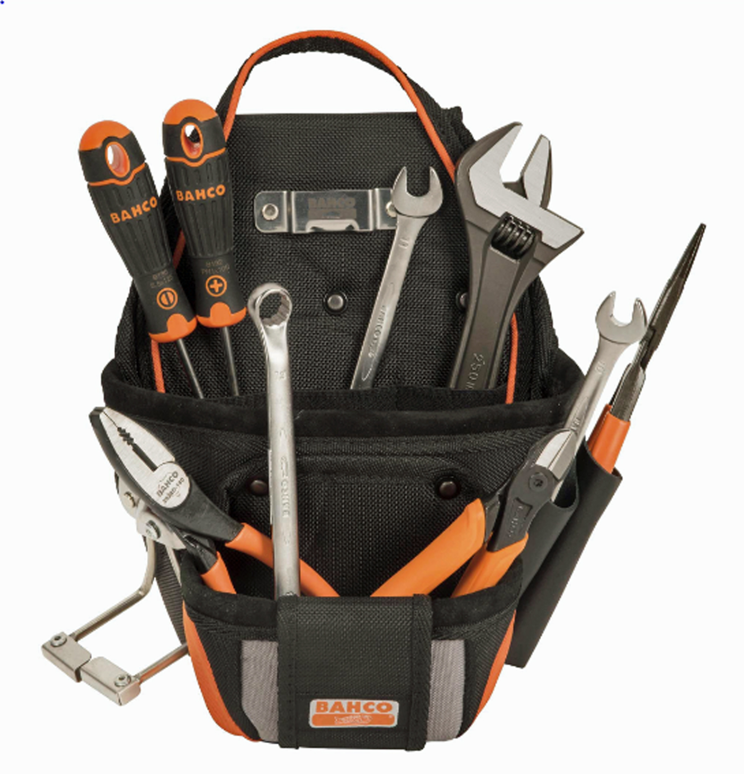 13pc BAHCO? Basic Maintenance Tool Kit In Universal Tool Pouch w/Carrying Handle - 3 Pliers, 5 Screwdrivers, 3 Combination Wrenches & 1 Adjustable Wrench. Fits Any Tool Belt. Williams? # 4750-UP-1TS5