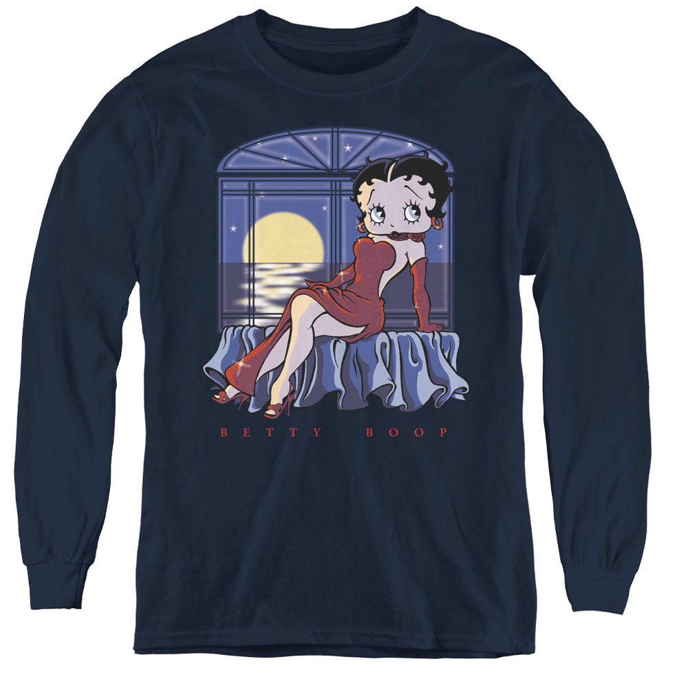 Trevco BB649-YL-1 Betty Boop & Moonlight-Youth Long Sleeve Tee, Navy - Small