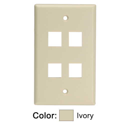 Leviton 41080-4IL - Single-Gang QuickPort Wallplate for Large Connectors - 4-Port - Ivory