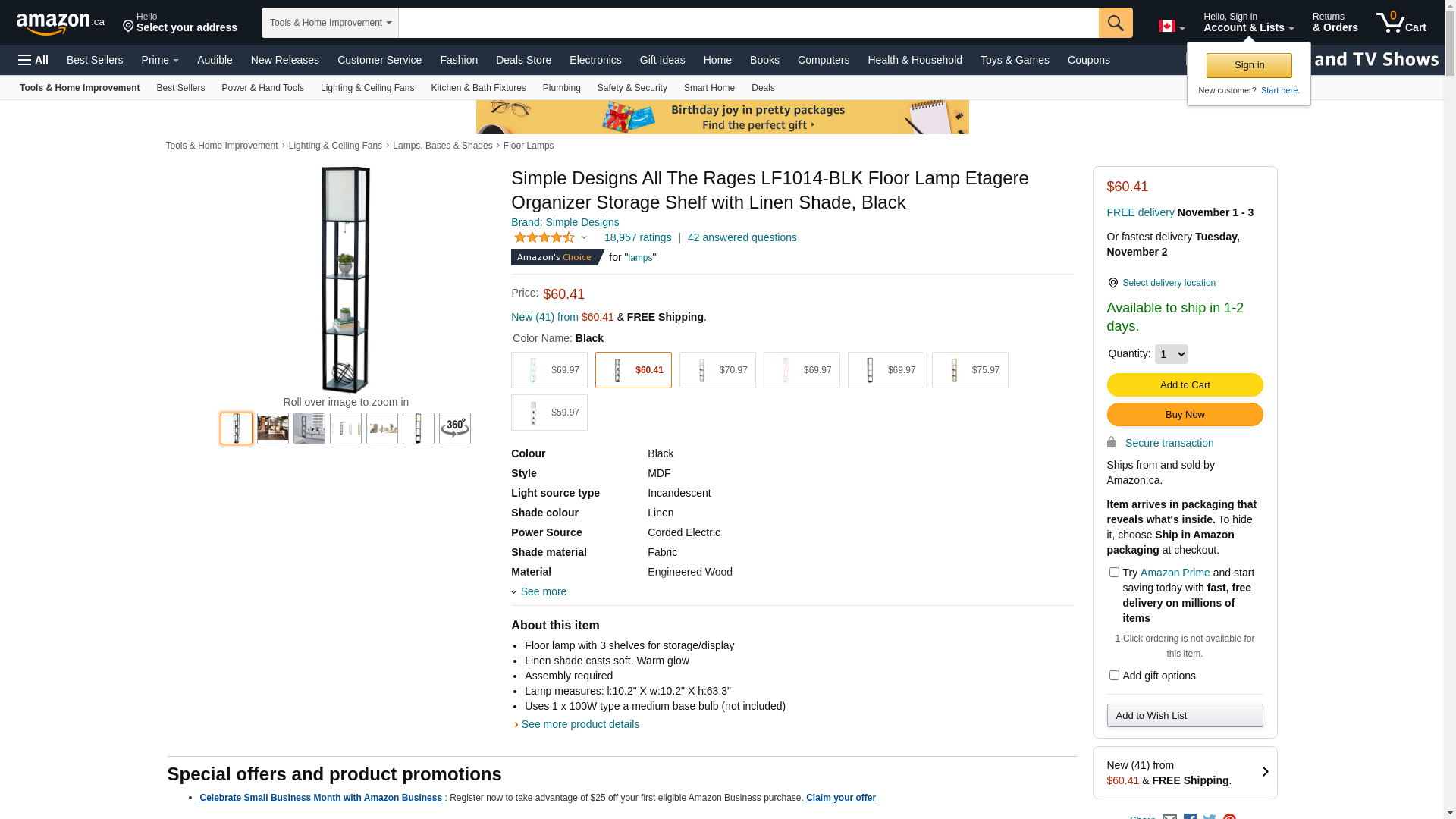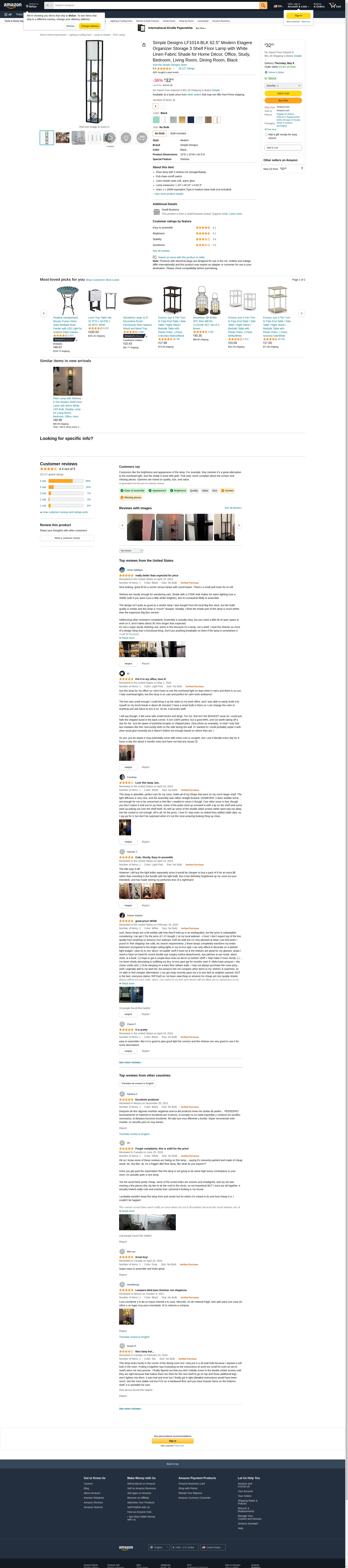 | Feature | Floor lamp with 3 shelves for storage/display |