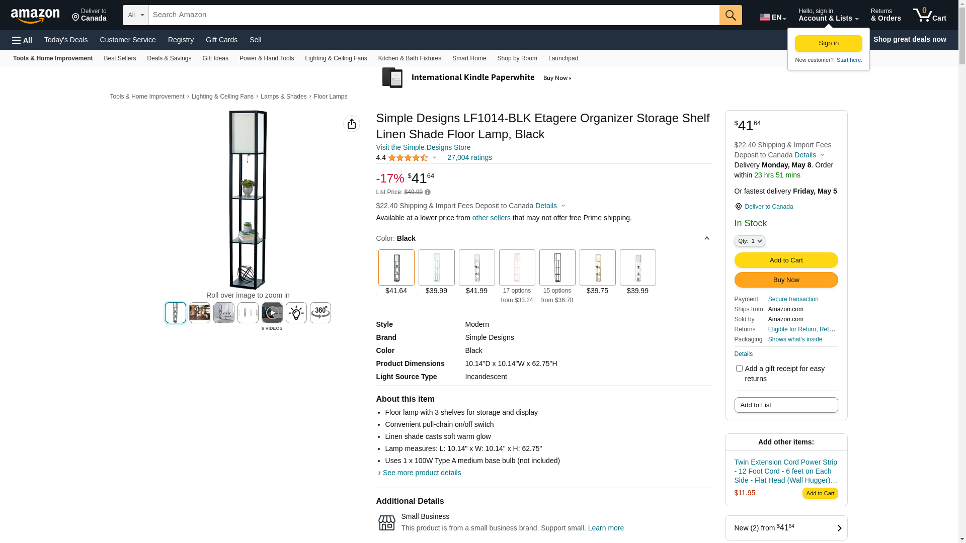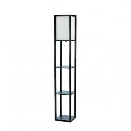 ALTLF1014BLK - Simple Designs Black Floor Lamp Etagere Organizer Storage Shelf with Linen Shade